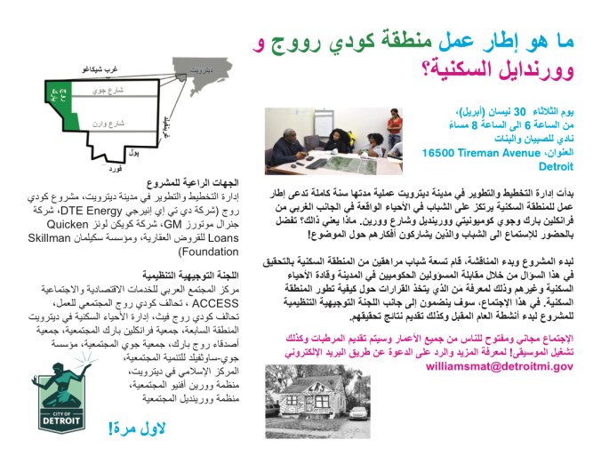 Information will be available about he coming year of activities—public discussions, youth programs, and neighborhood improvement projects—focused on the future of the west side neighborhoods of Cody Rouge & Warrendale, including Franklin Park, Joy Community, Warrendale, and Warren Avenue.