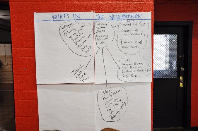 On January 18, Detroit Development and Planning Department staff Lindsey Barrett & Dave Walker led a School Rep Workshop with young people at Dixon Educational Learning Academy about the neighborhood around the school & how it is planned.