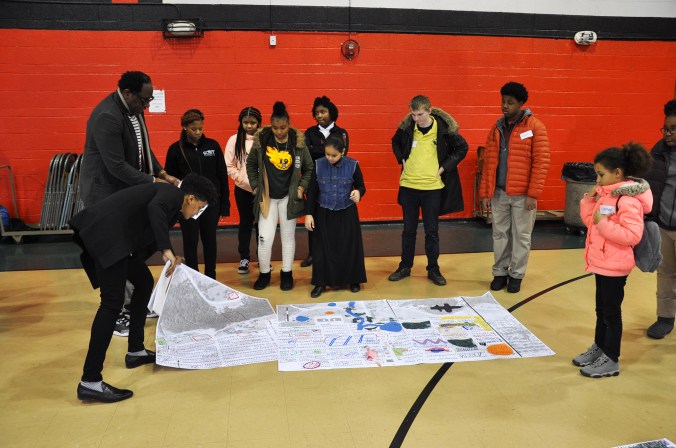 Friday morning, February 8, students from eight area schools came together at St Suzanne Cody Rouge Community Resource with a team from the City of Detroit Planning & Development Department for a morning of neighborhood discussions, drawings, and debates about Cody Rouge and Warrendale. Participating schools: Ann Arbor Trail Magnet School, Briethaupt Career and Technical Center, Carver STEM Academy, Cody High School, Dixon Educational Learning Academy, Gardner Elementary School, Henderson Academy, and Mann Learning Community .