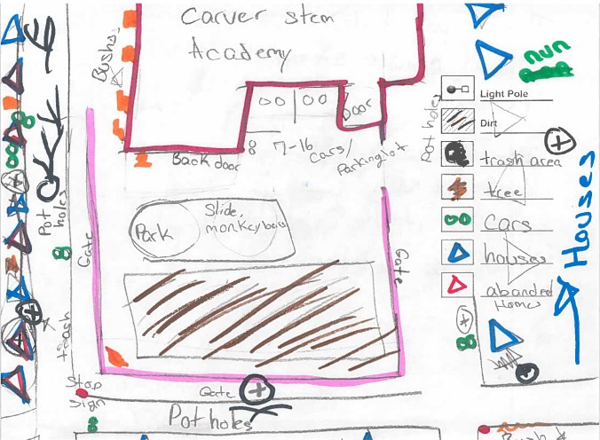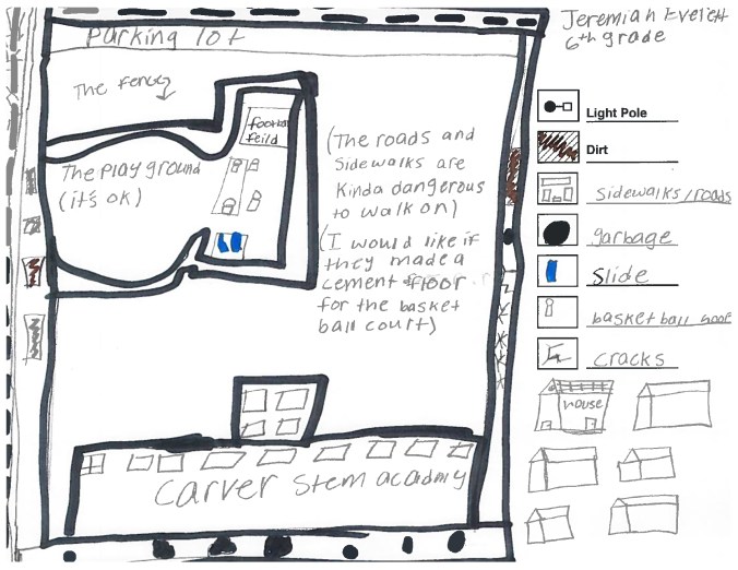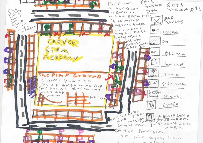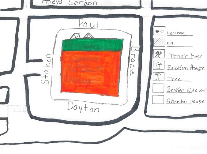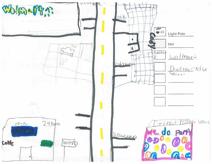 How do young people in Cody Rouge & Warrendale see their neighborhood? How do they spend their time? Here’s a sample of drawn & written responses from public school students who participated in the School Rep Workshops and School Rep Convening between December 2018 and March 2019. You can also download a PDF (24 mb).